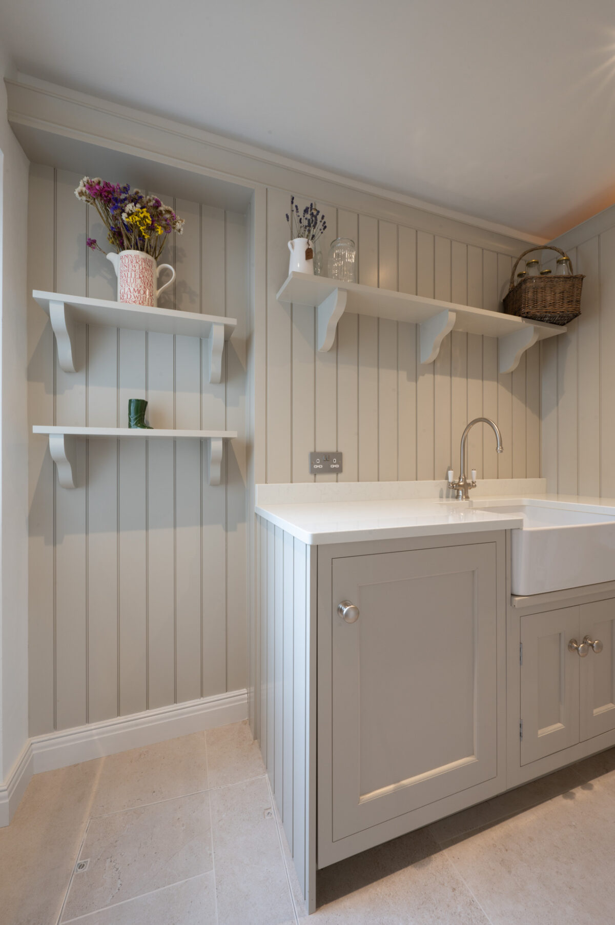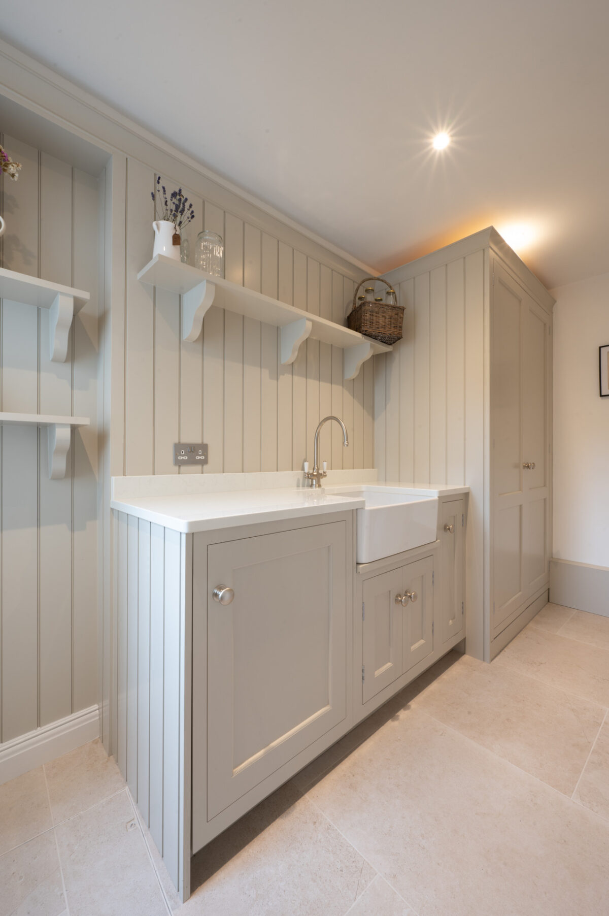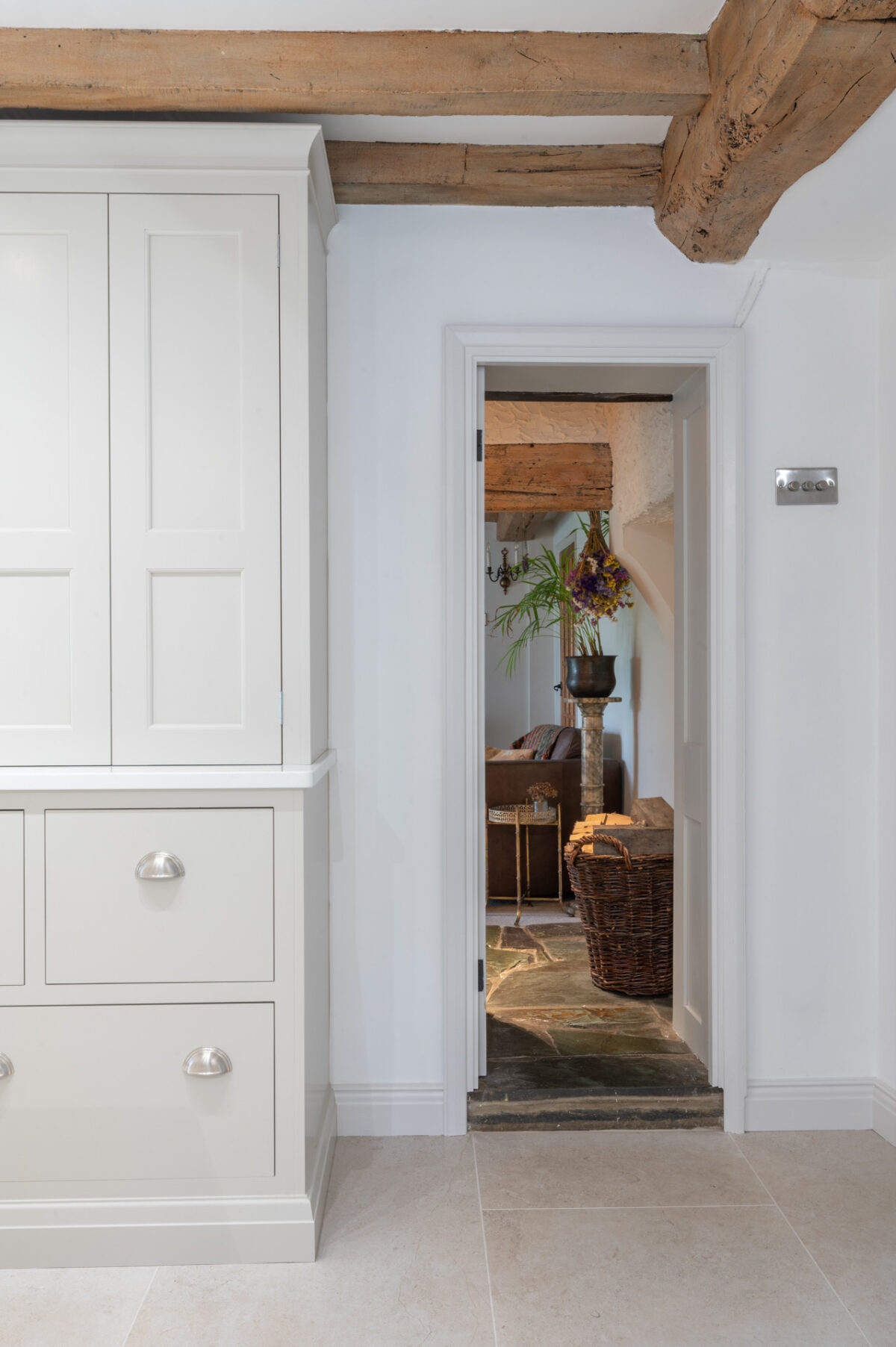 This project focused on transforming the kitchen and utility spaces within a characterful cottage dating back to 1750. With its exposed beams and uneven structure, the house presented both charm and challenge, calling for a thoughtful approach that would respect its history while making the space genuinely work for modern life.